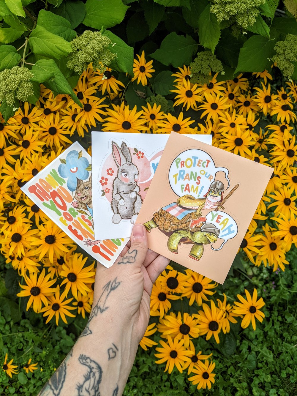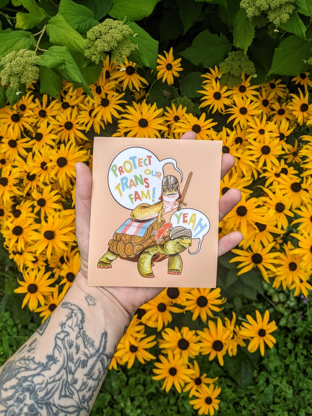 Get three different vinyl ways to show your support for our trans community! Each sticker is locally printed on heavy duty vinyl and die cut to the image. Slap em on your water bottles, cars, computers, or butts!